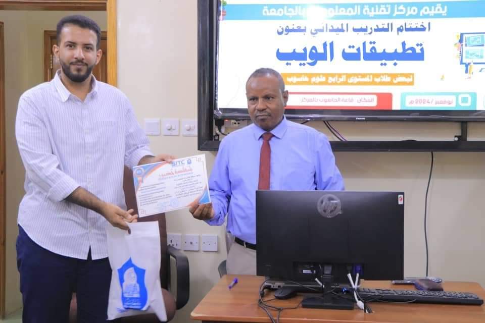بحضور نائب رئيس الجامعة لشؤون الطلاب اختتام الدورة التدريبية في تطبيقات الويب لطلاب المستوى الرابع بقسم علوم الحاسوب.