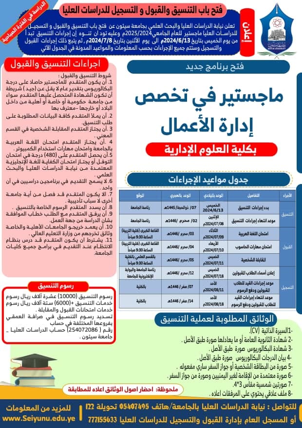 نطلاقاً من رؤية جامعة سيئون في النهوض بالعملية التعليمية ورفد المجتمع بالكفاءت المتميزة .