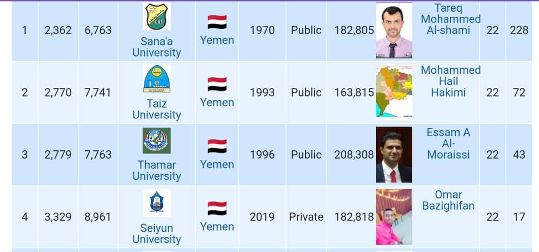 في قفزة نوعية جامعة سيئون تحصد المركز الرابع على مستوى اليمن في تصنيف الباحثين والعلماء AD SCIENTIFIC INDEX للعام الحالي ٢٠٢٤م .